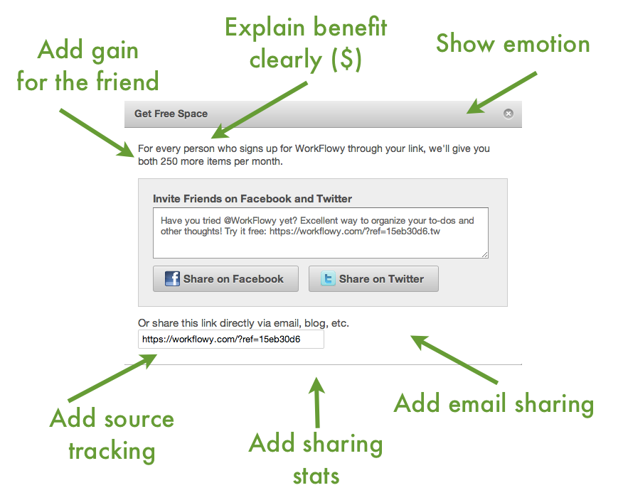 Pro tip: trigger an email when someone has responded to an invite or made a purchase (because very few people check your beautiful tell-a-friend page on a regular basis).